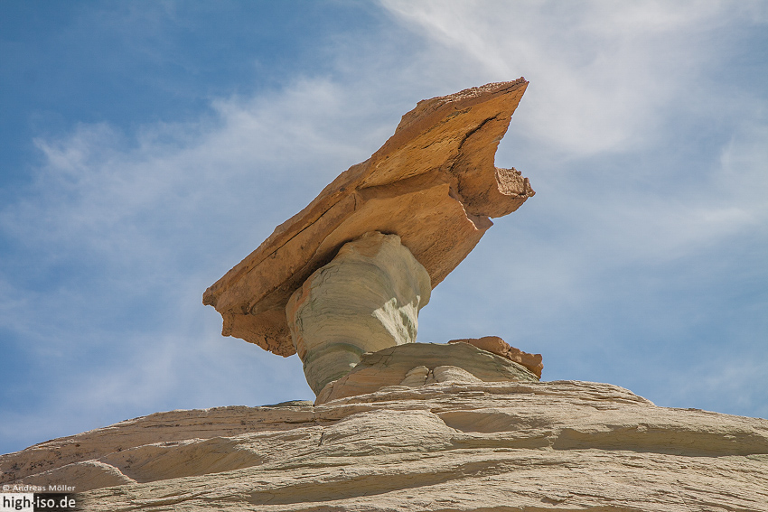 Die Hoodoos am Stud Horse Point beeindrucken durch ihre Größe. Die dicken Felsbrocken wiegen sicherlich mehrere Tonnen und werden einige Meter über dem Erdboden getragen.